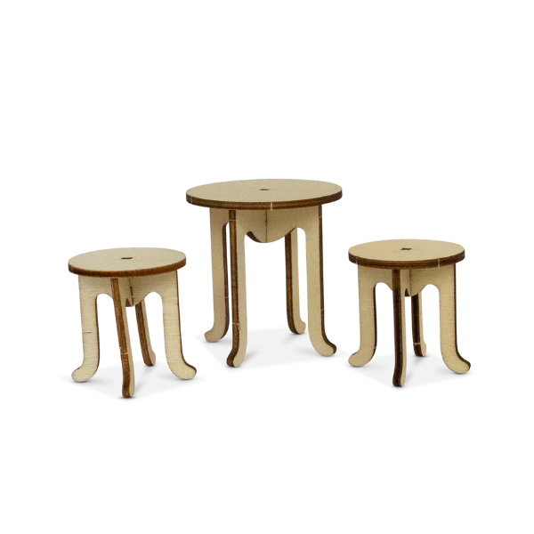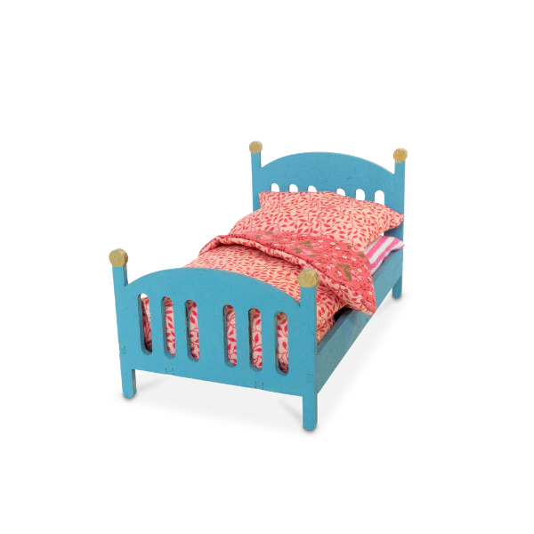 De binnenkant van het koffertje is bedrukt met een mooi vloertje en behang. Zet de houten meubeltjes eenvoudig in elkaar en verf ze in je favoriete kleuren. De schattige mini-theeset geeft Ella’s kamer een extra persoonlijk tintje. Versier de balletkamer verder met stickers en papieren mini-accessoires.